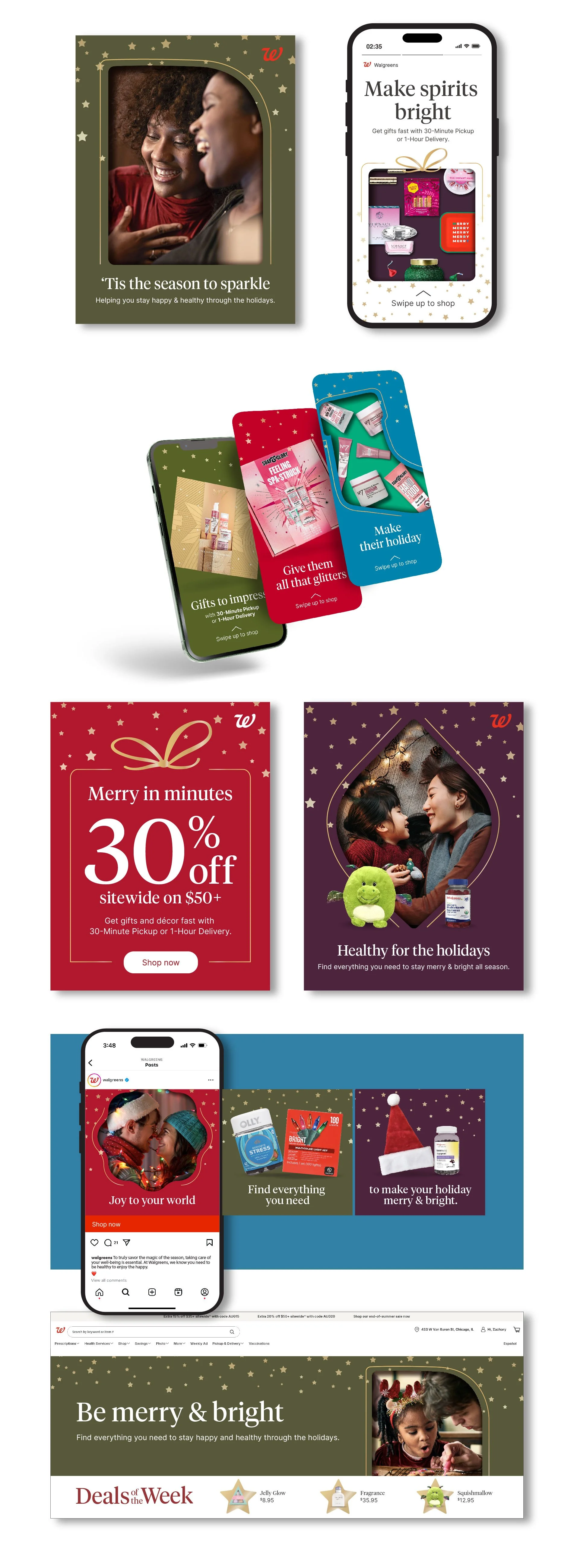 As Creative Lead for Walgreens 2024 Holiday Campaign, I defined the design direction using trend-driven insights and guided a team to create a warm, inclusive and engaging experience across all touchpoints.